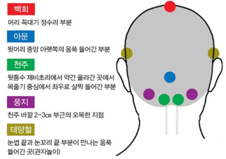 또 기경 중에서도 가장 중요한 기경인 독맥이 머리 중앙선을 지납니다. 독맥은 우리 몸에서 가장 중요한 것이라고 해도 과언이 아닙니다. 이 독맥을 자극하되, 특히 독맥의 상부인 머리 부분을 자극한다는 것은 온몸을 자극하는 것과도 같은 효과를 냅니다. 이상하게 생각되겠지만, 머리 꼭대기 부위를 손으로 자주 두드려 주면 치질이 해결됩니다. 아래 부위의 병은 위에서 치료한다는 한의학의 원리에 따라서 치질이나 정력 부족 등등의 하복부 질환을 머리 꼭대기 부분에서 치료가 가능하다는 것이지요.