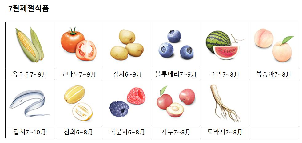 7월 제철음식 - 과일, 해산물, 채소, 나물